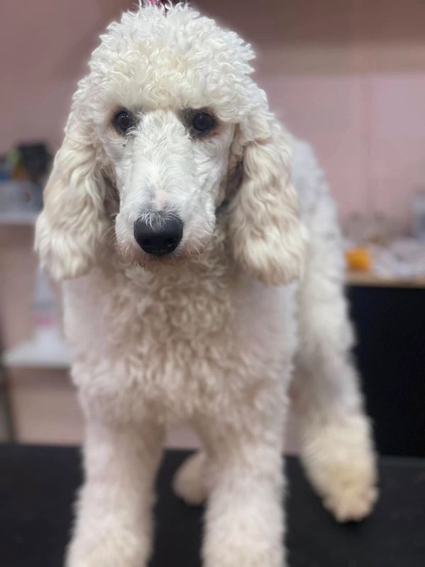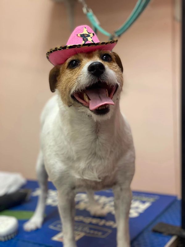 Includes bath, brush, blow-dry, nail trim, sanitary trim, ear cleaning, ear plucking, paw pad shave, teeth brush, and full body haircut.